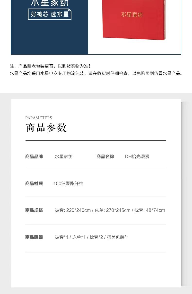水星家纺 磨毛纯色四件套拾光漫漫 130292 220*240cm